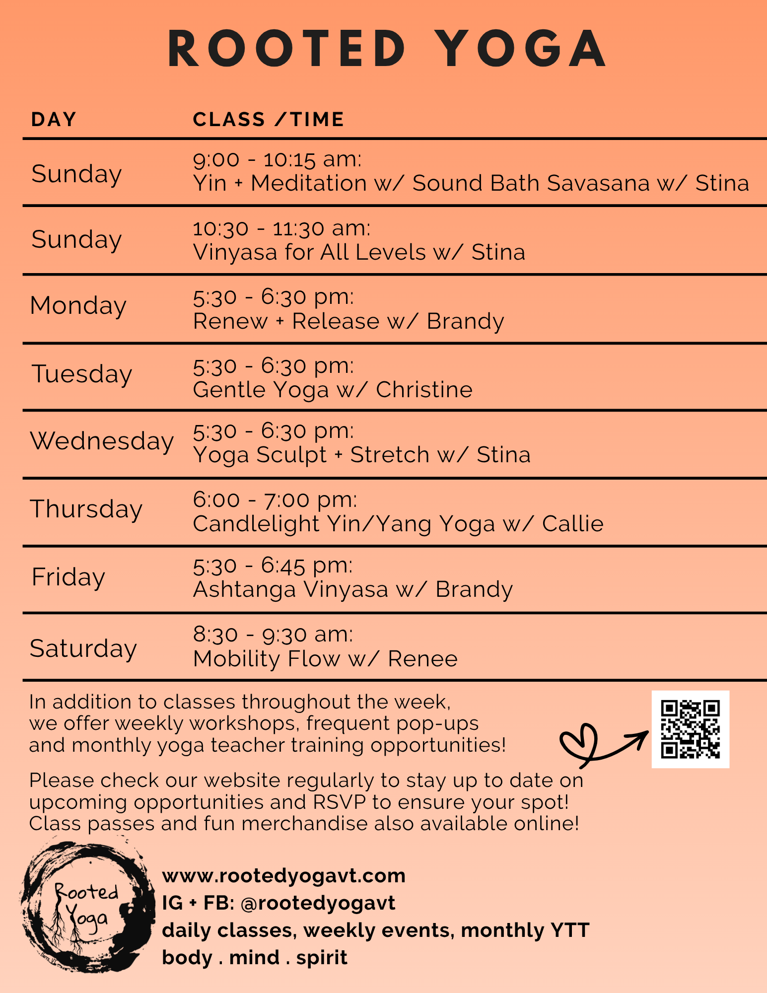 Visit out Classes + Passes page regularly to see pop-ups and special events too!